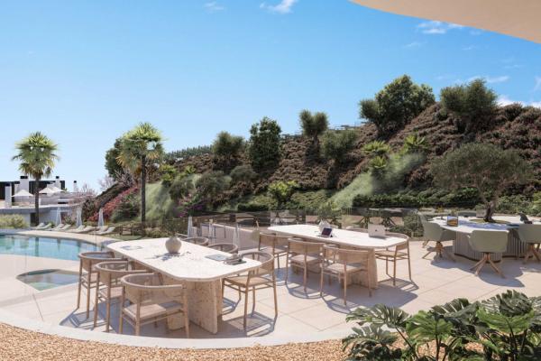 Located at the top of Elviria Hill, one of the most sought-after areas of Marbella East, this development is distinguished by its serene and natural setting, surrounded by lush pine forests and open views of the mountains.