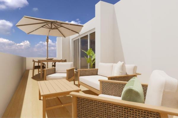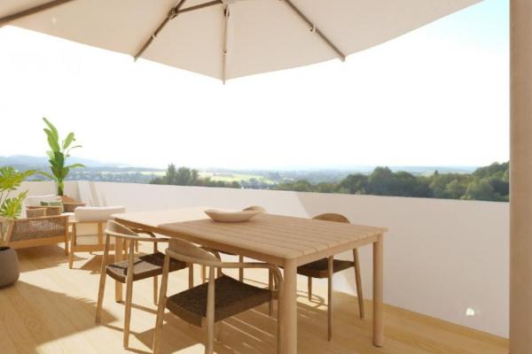The homes offer private terraces of 6,36 m2, 8.53 m2, and 31.75 m2, providing versatile outdoor spaces, perfect for morning coffee, a small garden, a quiet reading nook, or relaxing while enjoying the Mediterranean climate year-round, with views of the sea and mountains.