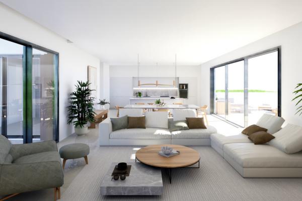 The large, energy-efficient windows allow you to enjoy the beautiful sea views and abundant sunlight in all bedrooms and the spacious, open-plan living room.